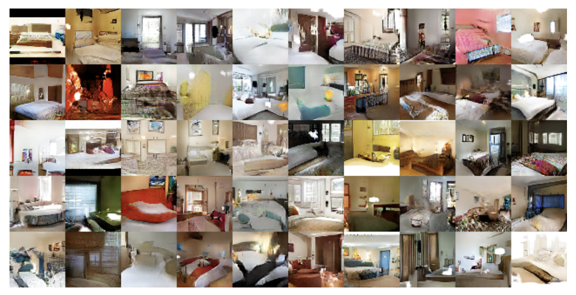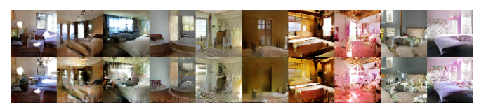 5 epoch를 돌린 결과물은 진짜 그럴싸합니다. 모르고 보면 이게 진짜 있는 방이 아니라 만들어진 이미지라는거에 놀랄거 같습니다. (Discriminator도 속고 나도 속고...)