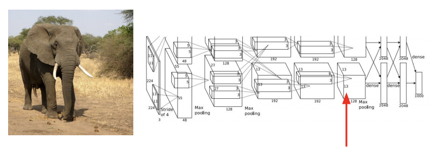 보통 Image Classification에서 마지막 layer은 dimension을 class의 개수로 축소해주는 fully-connected layer로, 위의 그림(Alexnet)에서는 마지막 fc-layer에 입력이 되는 vector가 4096 - D입니다.
