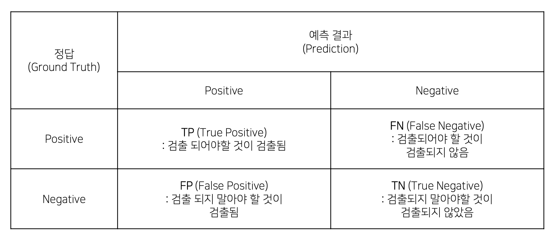 positive, 객체라고 예측한 모든 case중 맞은 case의 비율