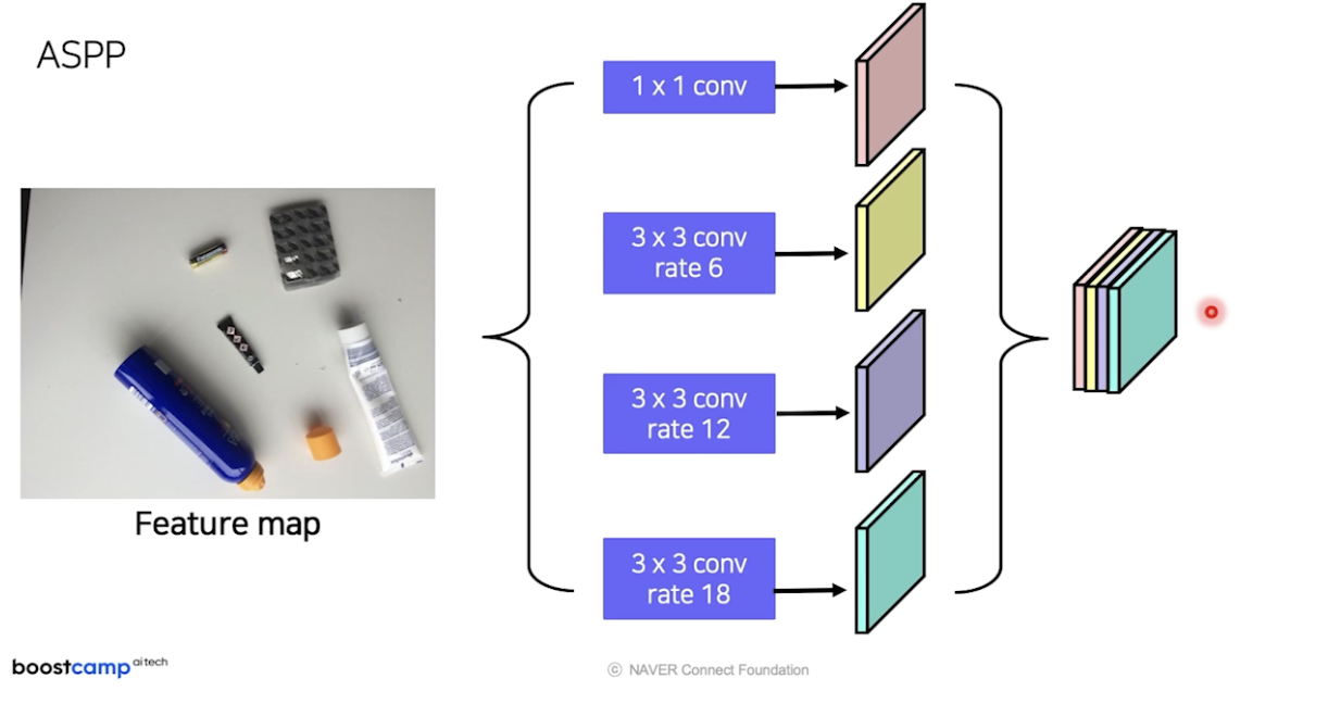 한번 Neck을 통과한 stage들은 (왼쪽에서 두번쨰 스택) ASPP를 거쳐서 다시 한번 feature map들과 합쳐진다.