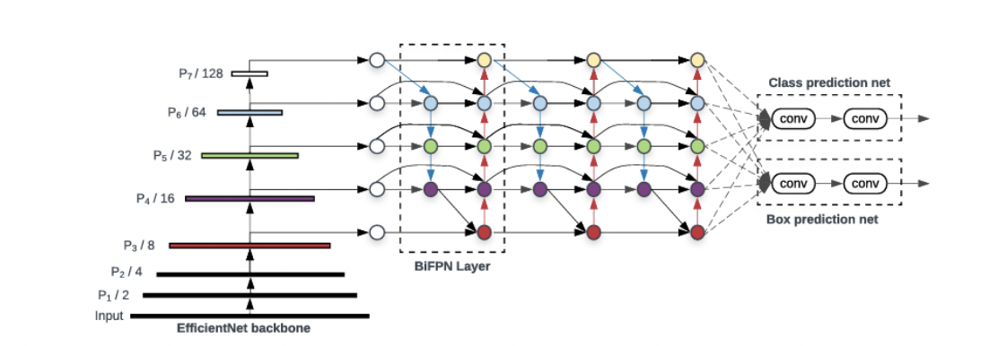 : Efficient Net B0~B6을 backbone으로 사용. scaling이 된 모델을 backbone으로.