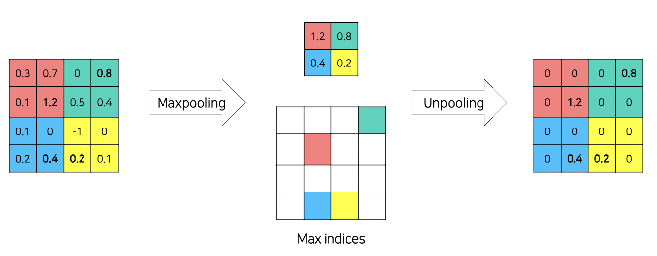 Unpooling을 하면 Pooling과정에서 날라간 정보들을 어느정도 복원할 수 있다.