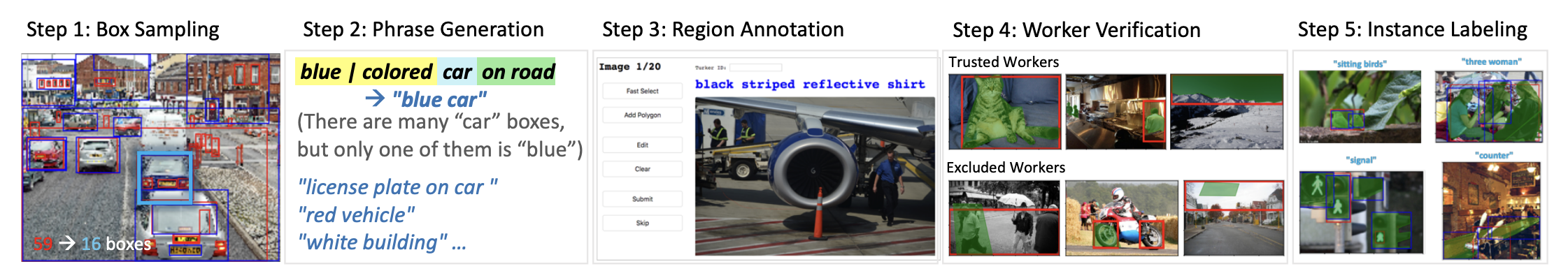 Visual Genome의 Bounding Box annotation을 활용해, Phrase와 그에 해당되는 region을 mask annotation 했다.